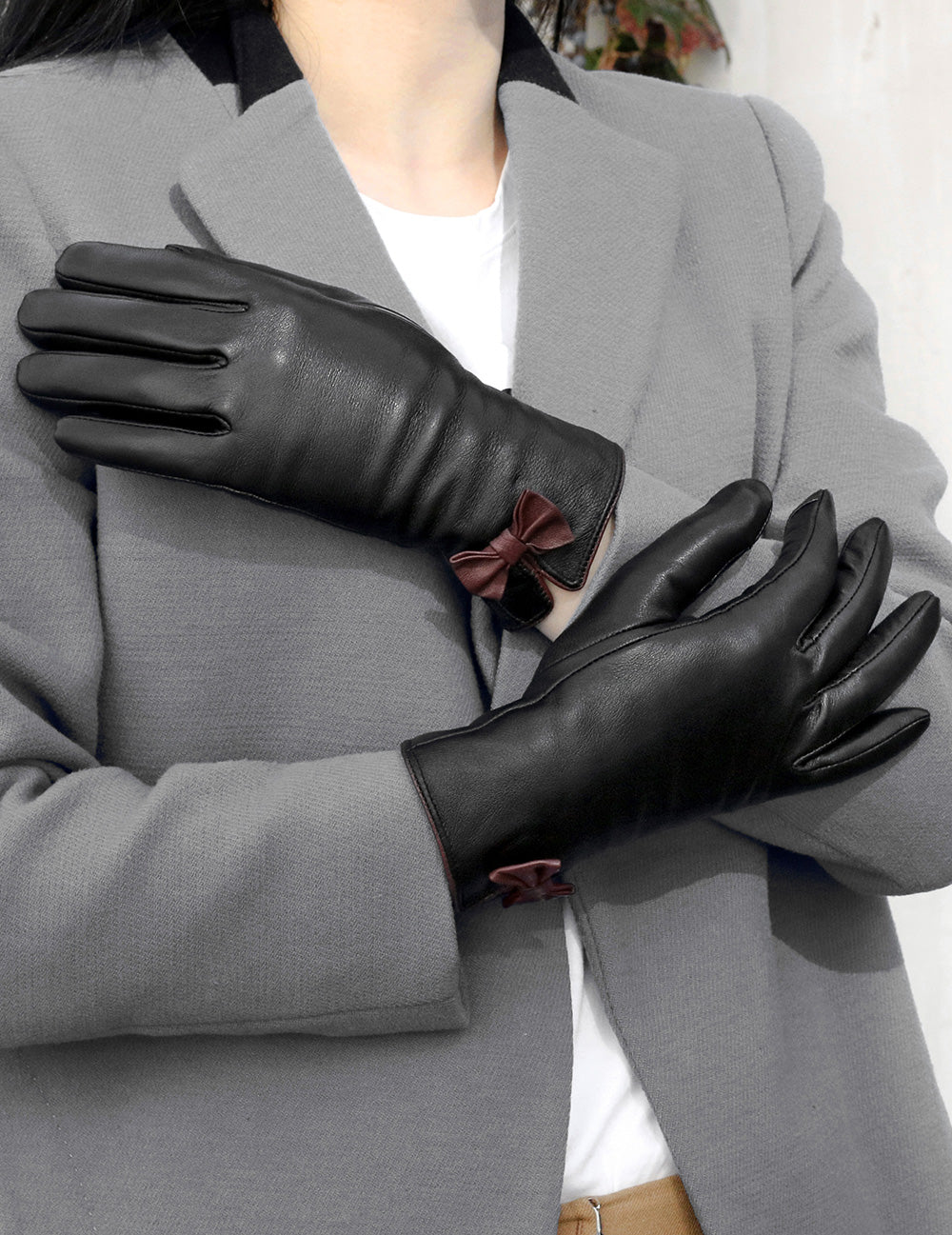 Karla Hanson Women's Deluxe Leather Touch Screen Gloves with Bow