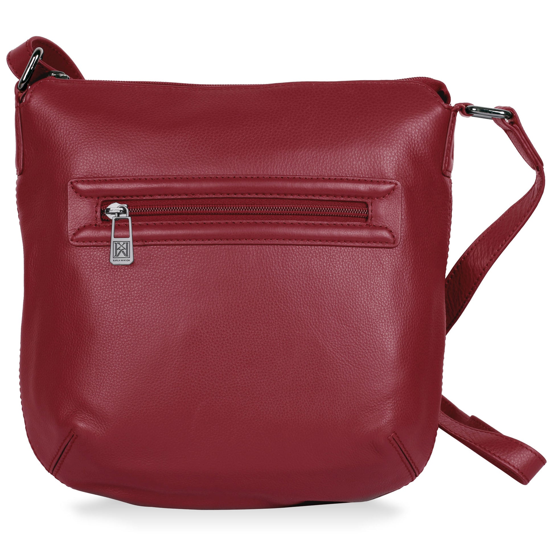 The Karla Hanson Dorothy Leather Crossbody Bag is a stylish and functional accessory for women. Featuring a zip closure compartment, front and back zipper pockets, and multiple interior pockets including a phone pocket and RFID-blocking divider, this bag offers both convenience and security. The adjustable strap ensures a comfortable fit, making it perfect for everyday use.