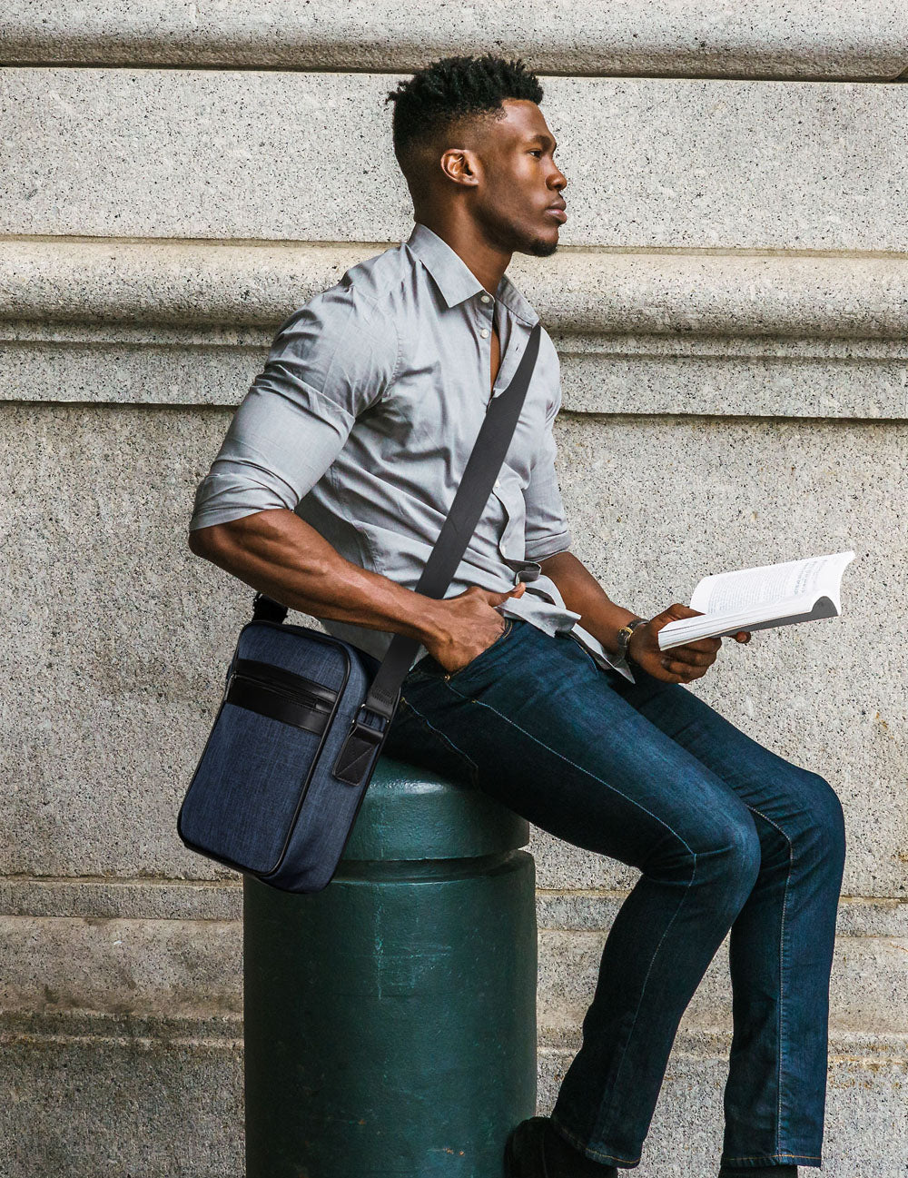 Soar into the high skies with Karla Hanson's Spencer flight bag. This flight bag features multiple pockets, so you can keep all your essentials within arm’s reach. Featuring textural interplay of fabric and vegan leather, he will sharpen up your traveller style.